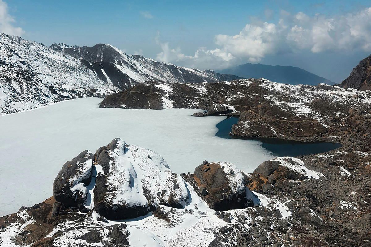 • After another half hour of hiking, we will arrive at the first lake, Saraswati Kunda, followed by Bhairav Kunda, and finally, the majestic Lake Gosaikunda.